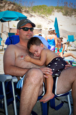 Last Saturday our little family departed for our annual trip to the OBX. In past years we have always stayed in a big house with family or friends, but not this year. This year we found one of the few condos available in Corolla Light and settled in, just the five of us. I was very wary about not taking playmates for my children, especially when they kept asking, "who's going to be there?" and "who will we do stuff with?" I am very happy to say that despite the occasional time we had to pry our children's claws out of each other, everyone got along swimmingly and all three brothers had a great time just being together. We always go to Corolla the week before school starts because the prices go down substantially and because it is always nice to have this trip to look forward to at the end of the summer. Since this week falls at the end of August and beginning of September, there is always a risk of bad weather- hurricanes to be more specific. We've been there before when a hurricane has hit just south of where we stay and it was actually a little bit fun to hear the winds and walk on the beach afterwards to see everything that washed up on the beach. When we heard that Earl was forecasted for during our stay we didn't worry about it. The kids enjoyed participating in programs at the Wildlife Center where they did crabbing again, which they loved last year and wanted to repeat, and also did some cane pole fishing where Cameron and Gavin both caught fish, and also went to a class on the organisms that live in the sound where they used nets to catch and examine all kinds of little creatures. One day Jeremy took Cameron and Gavin out on a jet ski in the sound which Cameron kept begging all week to do again. The community where we stayed had a big oceanfront pool that was perfect to hop into for a bit after a sandy day at the beach and they also had an indoor pool which was perfect for when we had had enough sun. But oh how we love the beach. Every day until Thursday we went for a few hours, building sandcastles and jumping over waves. Gavin surprised us all by his fearlessness as he swam over and under even the biggest of waves and he kept trying to venture out farther and farther. There were a couple of red flag days when we weren't supposed to get in the water and Gavin refused to heed the warnings, so we were constantly having to drag him back out of the surf. Cameron was content with the water up to his knees and poor little Mason wanted nothing to do with the unpredictability of the waves. The very first night we were there we took the kids down to dip their toes in and Mason got pummeled by a big wave. After that he only wanted to sit on a chair or be held. We watched a little bit of the weather while we were there but didn't really think much of it until my sister Lisa called on Wednesday asking if we were going to evacuate. That's when we watched a bit closer and learned that the county just below us and the Carova 4 x 4 beaches just above us were under mandatory evacuation. It was just us and Duck that were left and Thursday morning they made it mandatory that all visitors leave. We were looking forward to the two remaining days, even if they were rainy because we had puzzles and games and movies to keep us busy, so it was a bit of a bummer. We packed up our stuff, tried to eat the food left in the refrigerator and set out at noon. The rental office was 3 miles south of where we stayed. Since everyone else was leaving as well, it took us 2 hours to go those 3 miles! The traffic was at a complete standstill and eventually I got out and walked to turn in our keys. It took nearly 4 hours just to get off the outer banks which is less than 20 miles down. We decided to stay the night in Williamsburg and get one more day out of Busch Gardens. We had stopped there for a few hours on our way to the beach and had planned to stop again anyway on the way home. After the rain stopped on Friday we enjoyed no lines on all of our favorite rides. It was the perfect end to an eventful week. This may have been our favorite beach week yet, even though it was just us. Not only do I love my family, but I just really, really like them and bonding times like this make me like them even more.